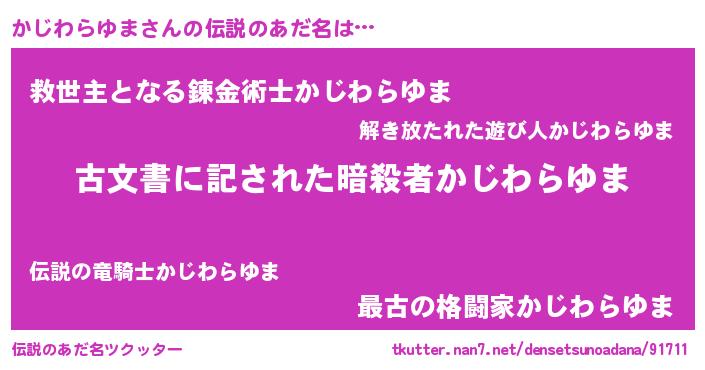 | 意味不明あだ名 | 『自称かじわらゆま』 |