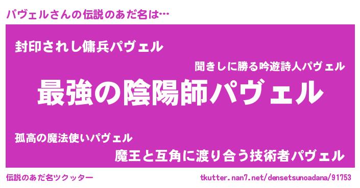 | ファンタジー風あだ名 | 『エターナルパヴェルー』『パヴフェル』 |