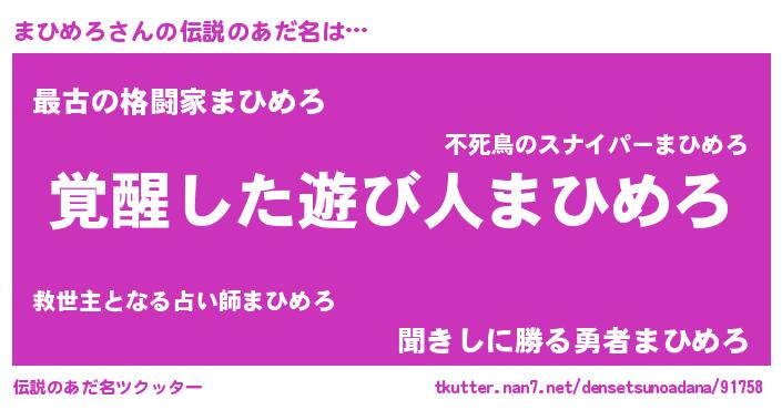 | ヒーロー風カッコイイあだ名 | 『幻影騎士マヒ』『ウルトラまひめろマン』 |