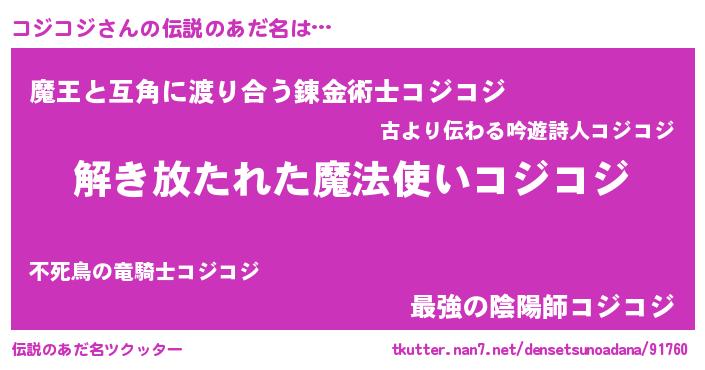 | ヒーロー風カッコイイあだ名 | 『仮面コジダー』『銀牙騎士コジ』 |