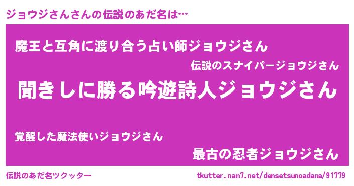 | ヒーロー風カッコイイあだ名 | 『仮面ジョダー』『最強戦士ジョウジサン』 |
