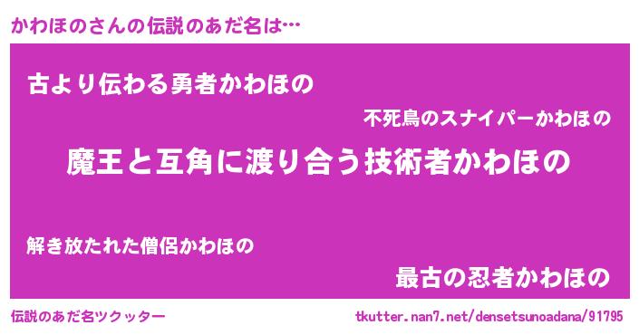 | ヒーロー風カッコイイあだ名 | 『サイバー戦士カワホノ』『仮面カワダー』 |