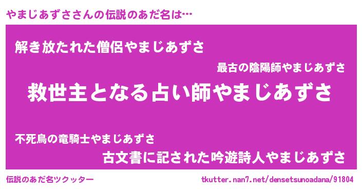 | 男性向けラノベタイトル風あだ名 | 『やまじあずさに滅ぼされるだけの簡単なお仕事です』 |
