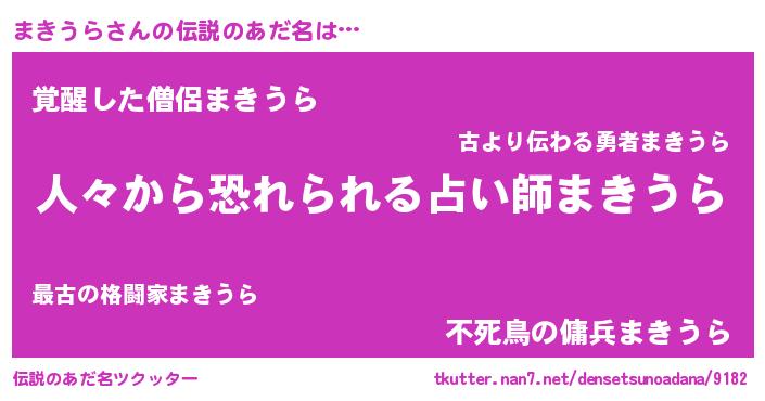 | ヒーロー風カッコイイあだ名 | 『超時空戦士マキウラ』『魔戒騎士マキ』 |