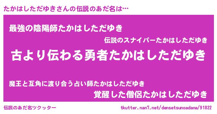 | 意味不明あだ名 | 『永久保存たかはしただゆき』 |