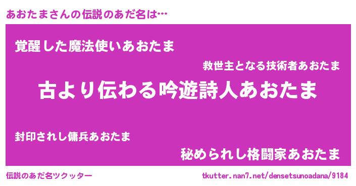 | ヒーロー風カッコイイあだ名 | 『ネオアオタマ』『天弓騎士アオ』 |
