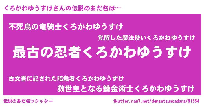 | 男性向けラノベタイトル風あだ名 | 『転生したらくろかわゆうすけだった件』 |