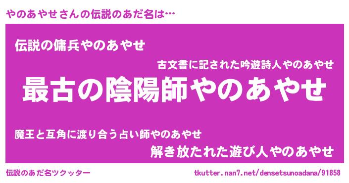 | 胡散臭い通販商品みたいなあだ名 | 『世界が平和になる高級そうな皿…その名も「やのあやせ」』 |