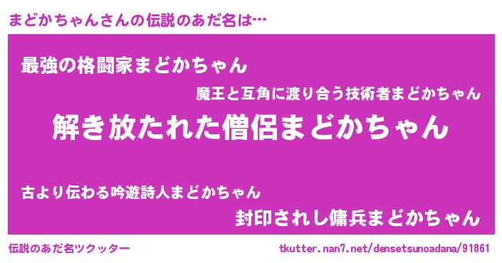 | ヒーロー風カッコイイあだ名 | 『幻影騎士マド』『スーパーマドカチャン』 |