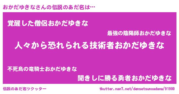 | 意味不明あだ名 | 『自称おかだゆきな』 |