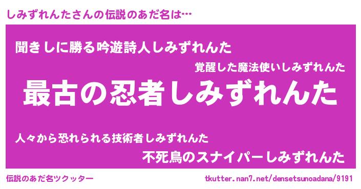 | ヒーロー風カッコイイあだ名 | 『仮面シミダー』『ネオシミズレンタ』 |