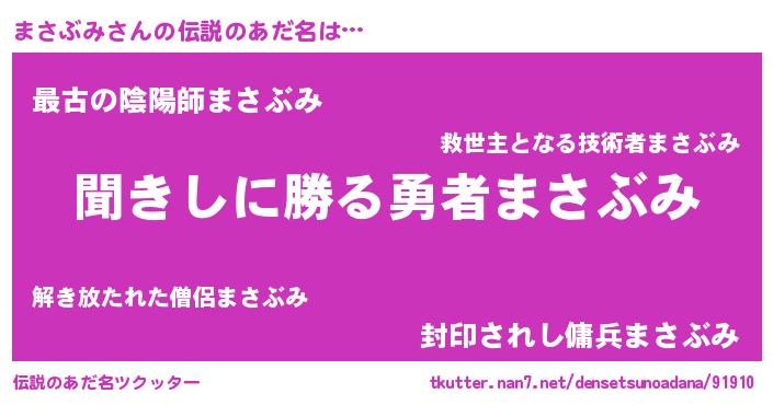 | 男性向けラノベタイトル風あだ名 | 『魔弾の王とまさぶみ』『まさぶみの憂鬱』 |