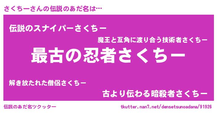 | 男性向けラノベタイトル風あだ名 | 『魔弾の王とさくちー』『さくちーの憂鬱』 |