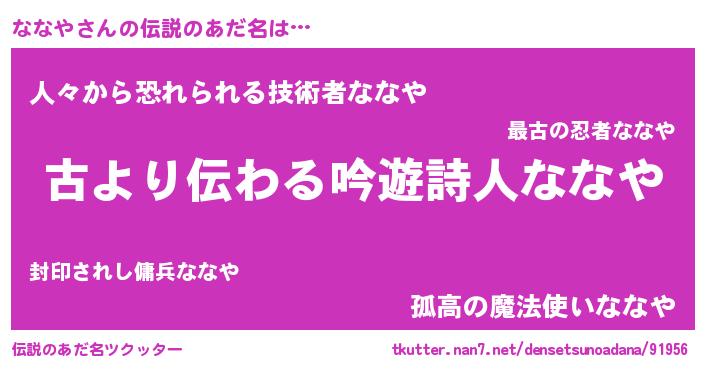 | 意味不明あだ名 | 『永久保存ななや』『エリンギ科ななや属』 |
