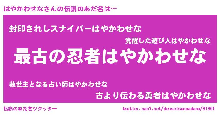| ヒーロー風カッコイイあだ名 | 『サイバー戦士ハヤカワセナ』 |