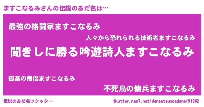 | ヘコむあだ名 | 『ますこなるみ(笑)』『レバニラ』 |