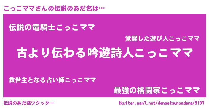 | 意味不明あだ名 | 『永久保存こっこママ』 |