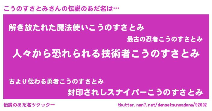 | ヒーロー風カッコイイあだ名 | 『正義の使者こうのすさとみ』 |