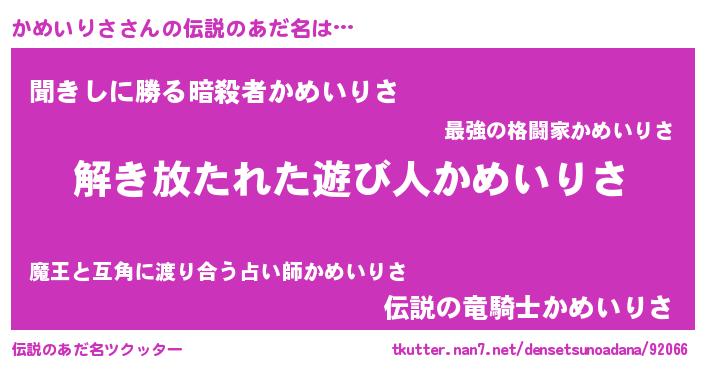 | 意味不明あだ名 | 『自称かめいりさ』『永久保存かめいりさ』 |
