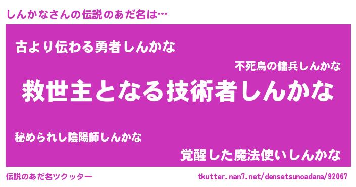 | ヒーロー風カッコイイあだ名 | 『天空の使者しんかな』『ネオシンカナ』 |