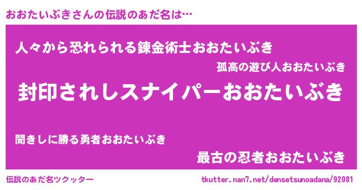 | 男性向けラノベタイトル風あだ名 | 『オオタイブキアートオンライン』 |
