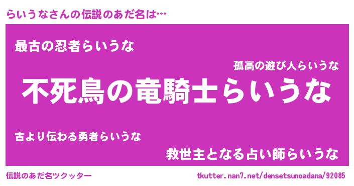 | 意味不明あだ名 | 『住所不定無職らいうな(3歳)』 |