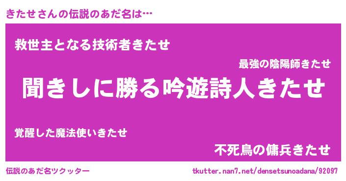 | ヒーロー風カッコイイあだ名 | 『仮面キタダー』『ネオキタセ』 |