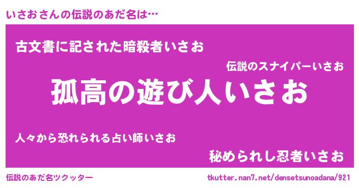 | ヒーロー風カッコイイあだ名 | 『黄金騎士イサ』『ネオイサオ』 |