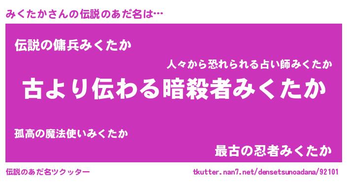 | 胡散臭い通販商品みたいなあだ名 | 『来世でも幸せになれる健康食品…その名も「みくたか」』 |