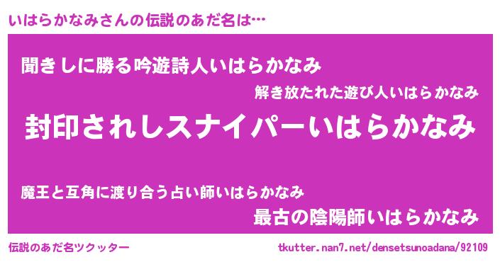 | 胡散臭い通販商品みたいなあだ名 | 『億万長者になれる霊験あらたかなお札…その名も「いはらかなみ」』 |
