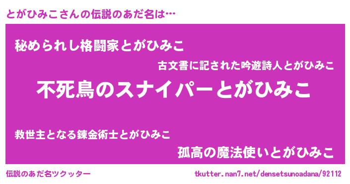 | 胡散臭い通販商品みたいなあだ名 | 『モテモテ間違いなし霊験あらたかなお札…その名も「とがひみこ」』 |