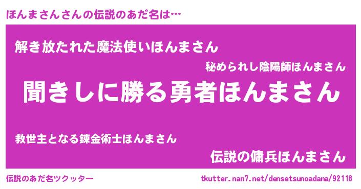 | ヘコむあだ名 | 『ほんまさん(苦笑)』『ほんを』 |