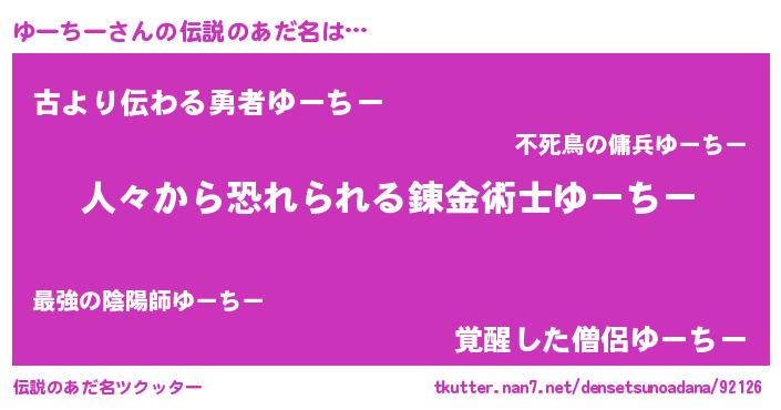 | 意味不明あだ名 | 『住所不定無職ゆーちー(98歳)』 |
