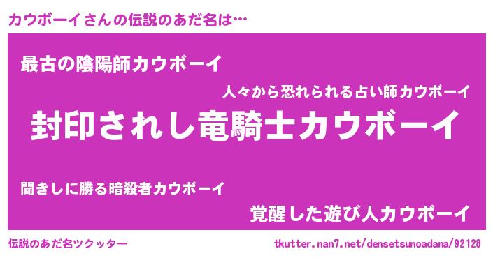 | 男性向けラノベタイトル風あだ名 | 『カウボーイアートオンライン』 |