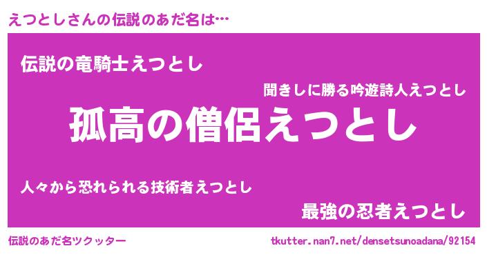 | 男性向けラノベタイトル風あだ名 | 『エツトシスレイヤー』『えつとしの憂鬱』 |