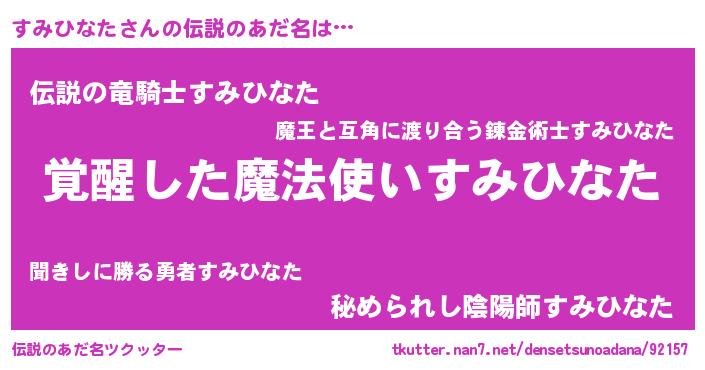 | 男性向けラノベタイトル風あだ名 | 『すみひなたの嫁は女の子じゃないと思った?』 |
