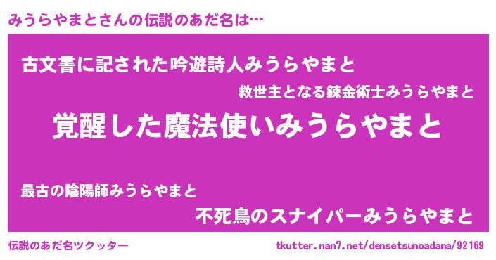 | ポケモン風あだ名 | 『ヒミウラヤマト』『ミウゴンZ』 |