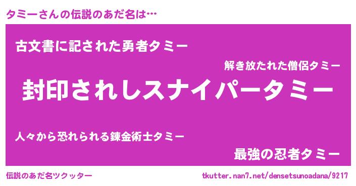 | 胡散臭い通販商品みたいなあだ名 | 『億万長者になれる霊験あらたかなお札…その名も「タミー」』 |