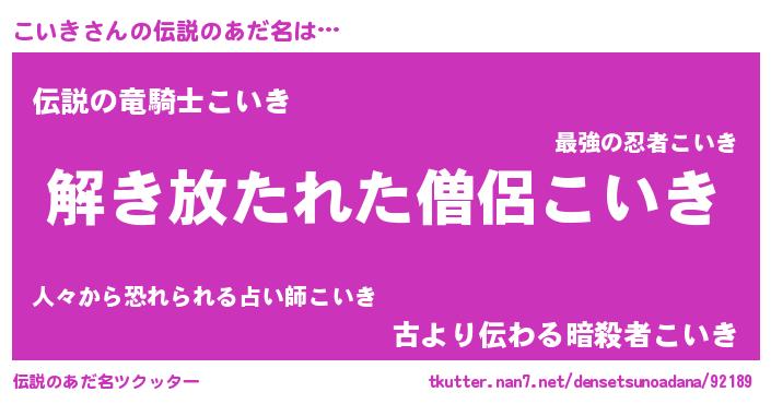 | 意味不明あだ名 | 『とにかく怪しいこいき』 |