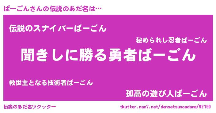 | 料理風あだ名 | 『ばーごんごはん』 |