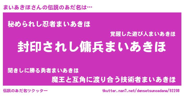 | ヒーロー風カッコイイあだ名 | 『スーパーマイアキホ』『黄金騎士マイ』 |