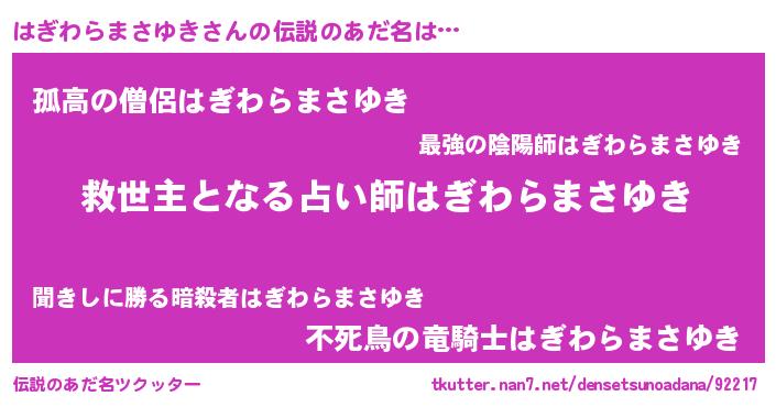 | ヒーロー風カッコイイあだ名 | 『慈愛の使者はぎわらまさゆき』 |