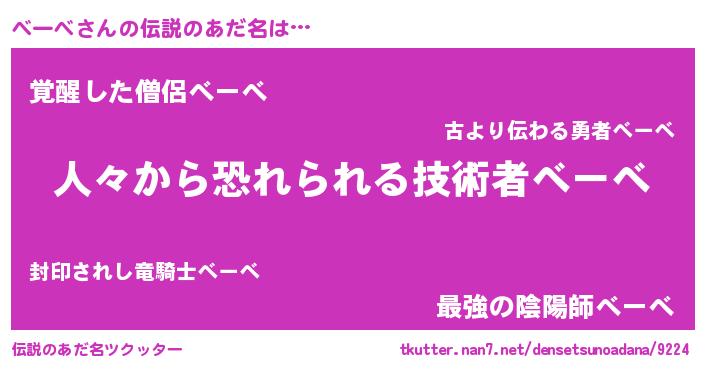 | ヒーロー風カッコイイあだ名 | 『正義の使者べーべ』『天弓騎士ベー』 |