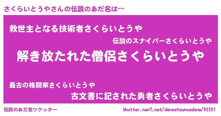 | 男性向けラノベタイトル風あだ名 | 『ダンジョンにさくらいとうやを求めるのは間違っているだろうか』 |