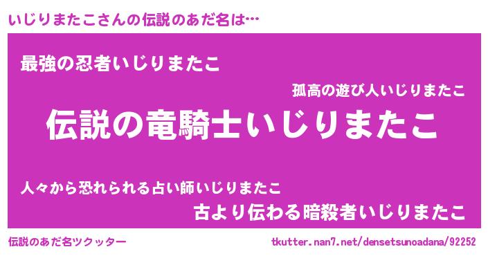 | ヒーロー風カッコイイあだ名 | 『スーパーイジリマタコ』『仮面イジダー』 |