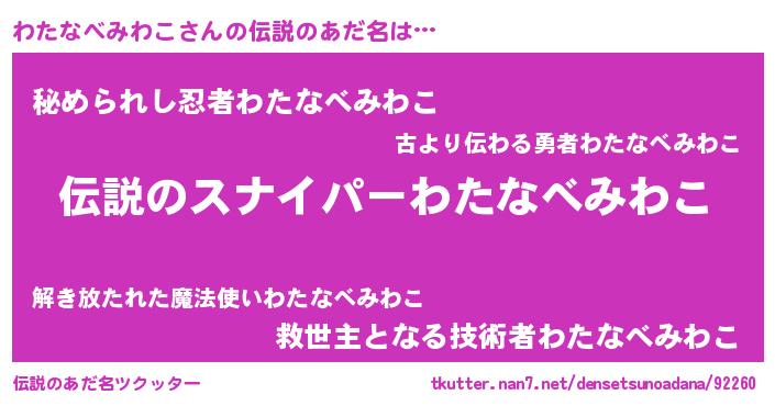 | ヒーロー風カッコイイあだ名 | 『スーパーワタナベミワコ』 |