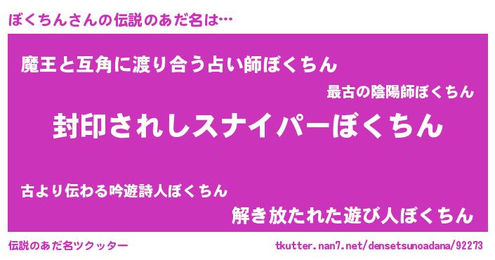 | ファンタジー風あだ名 | 『ゼボクトゥ』『ボクフェル』 |