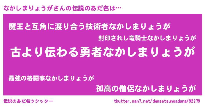 | 男性向けラノベタイトル風あだ名 | 『なかしまりょうがという概念が存在しない退屈な世界 』 |