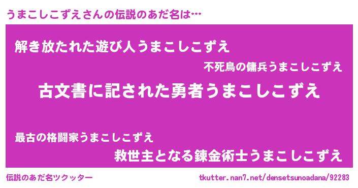 | 意味不明あだ名 | 『永久保存うまこしこずえ』 |