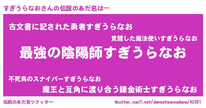 | ヘコむあだ名 | 『酢こんぶ』『すぎうらなお(震え声)』 |